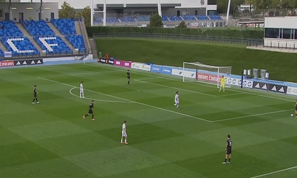 La partita è cominciata con un possesso favorevole ai bianconeri, che cercavano immediatamente di imporsi. Al 5’ si è registrata la prima occasione significativa con Merola, protagonista di una discesa sulla fascia, conclusa senza successo. Il Real Madrid ha mostrato un ritmo crescente, e all’8’ ha assestato il primo pesante pericolo con un tiro di fortea respinto da Huli. Al 12’, un tentativo dal limite di Fortea è stato deviato in angolo da Verde, mentre al 13’ la squadra madrilena ha avuto la meglio su un calcio piazzato, grazie all’abilità di Navascues, che ha insaccato con un colpo di testa, portando gli spagnoli in vantaggio.